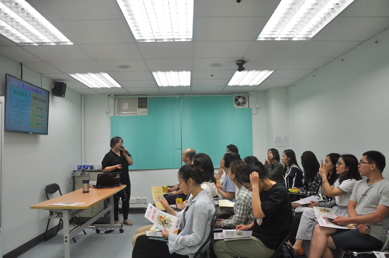4日上午研院师生来到协康会综合服务大楼,陈主任介绍了协康会针对患有自闭症、多动症、智力障碍、患有学习障碍的学前儿童、中小学生、青年及其家人提供的一站式服务,并按小组带领师生对特殊幼儿中心、早期教育及训练中心以及家长资源中心进行观察学习,协康会坚信每一个孩子都是有能力的,通过55年的努力协康会在推动香港融合教育和康复服务的发展发出了强有力的声音。