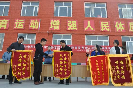 阜平县五个受捐赠贫困中小学校长向石书记回赠锦旗