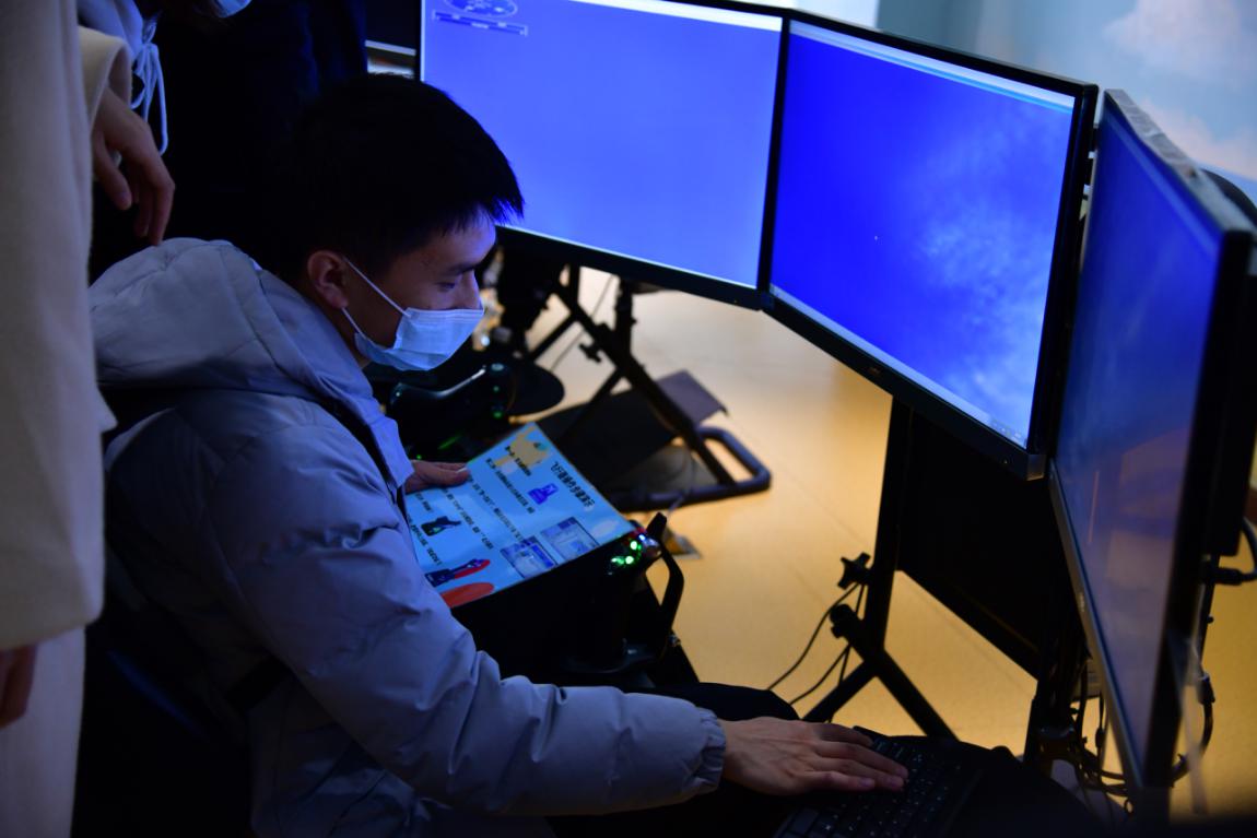 图6:社工师生参观社区青少年科普基地模拟飞行设备