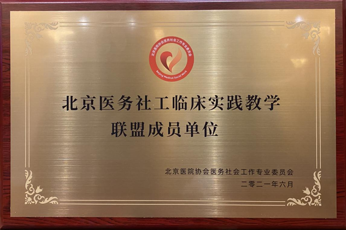 所获“北京医务社工临床实践教学联盟成员单位”授牌