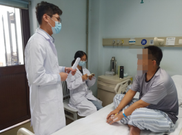 跟随着两位带教老师,每组成员来到病房内对患者进行了惯例查房和走访,了解了多位患者的情况。一组、二组接触到有典型的酒精性肝硬化患者,也有年纪较小由于其他疾病引发的肝硬化并发症的综合型患者,而三组、四组的同学接触到了一些肠梗阻患者。在与患者进行短暂的交谈问答中,小组成员了解了他们对于自身病情的了解、态度,以及治病的经历和看法。