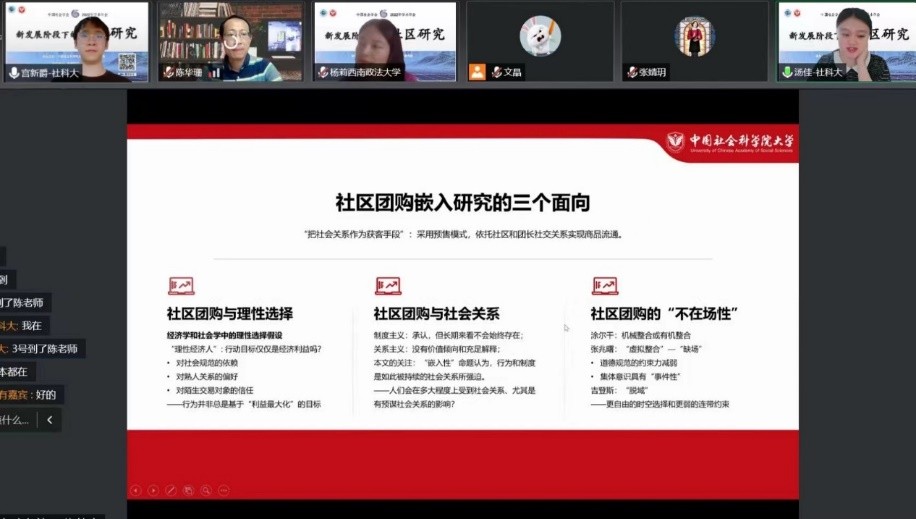 温莹莹老师指导的科研项目成果论文《嵌入还是脱嵌?——社区团购形塑的社会关系》被中国社会学会年会的 “新发展阶段下的社区研究”分论坛收录,宫新爵等同学参会,并在其中的“互联网社区”单元进行报告。