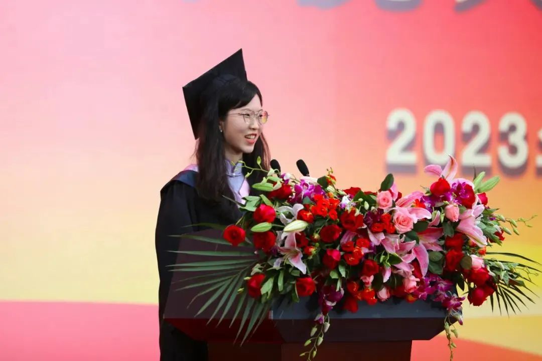 2019级社会学系的许宇童,很荣幸能作为本科新生代表进行发言,今天我演讲的题目是《全力以赴,未来可期》。”四年前,我曾经站在这里作为2019级本科新生代表发言。时光荏苒,岁月如梭。四年后,我又回到这里,而今天,我的身份是2023届本科毕业生。