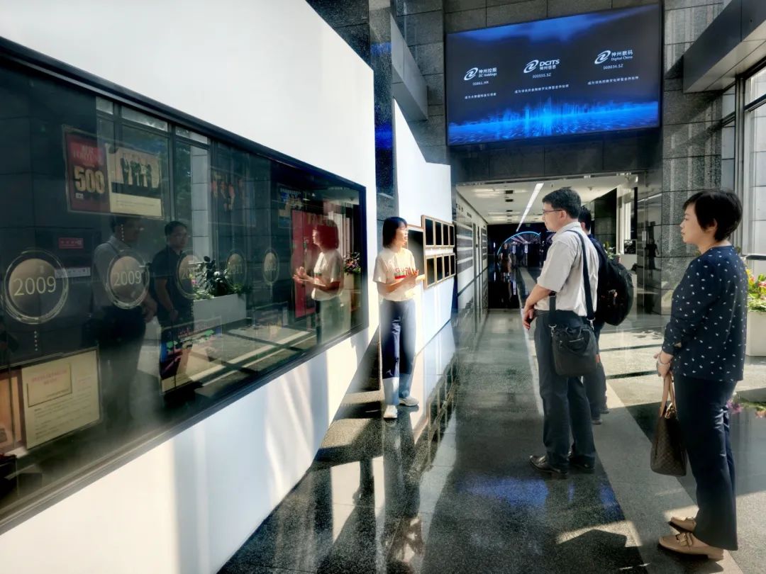 赴企业交流表示热烈欢迎,在她们带领下参观了企业办公环境,详细介绍了神州数码集团发展沿革、业务范围、产品服务和未来规划。