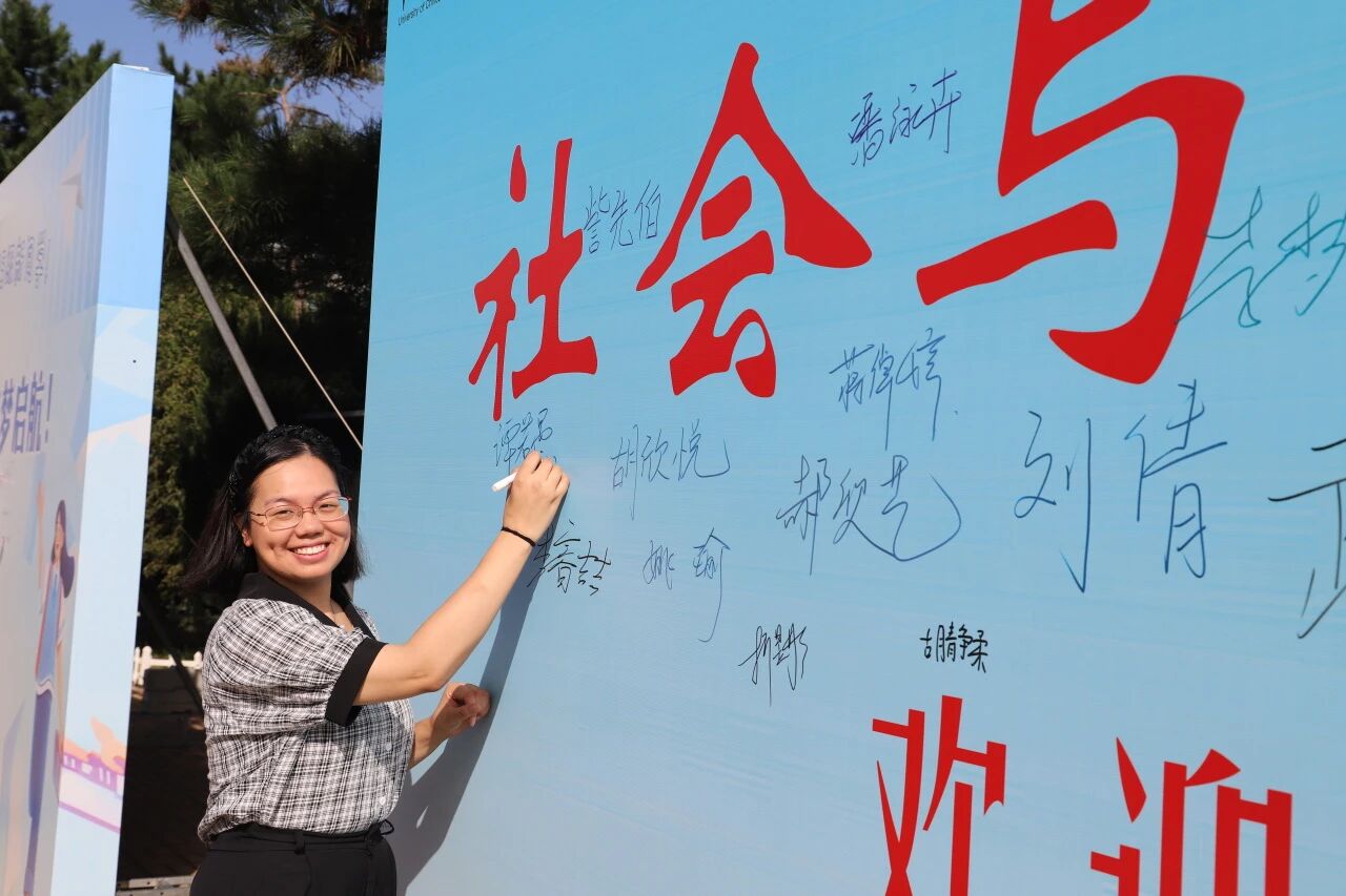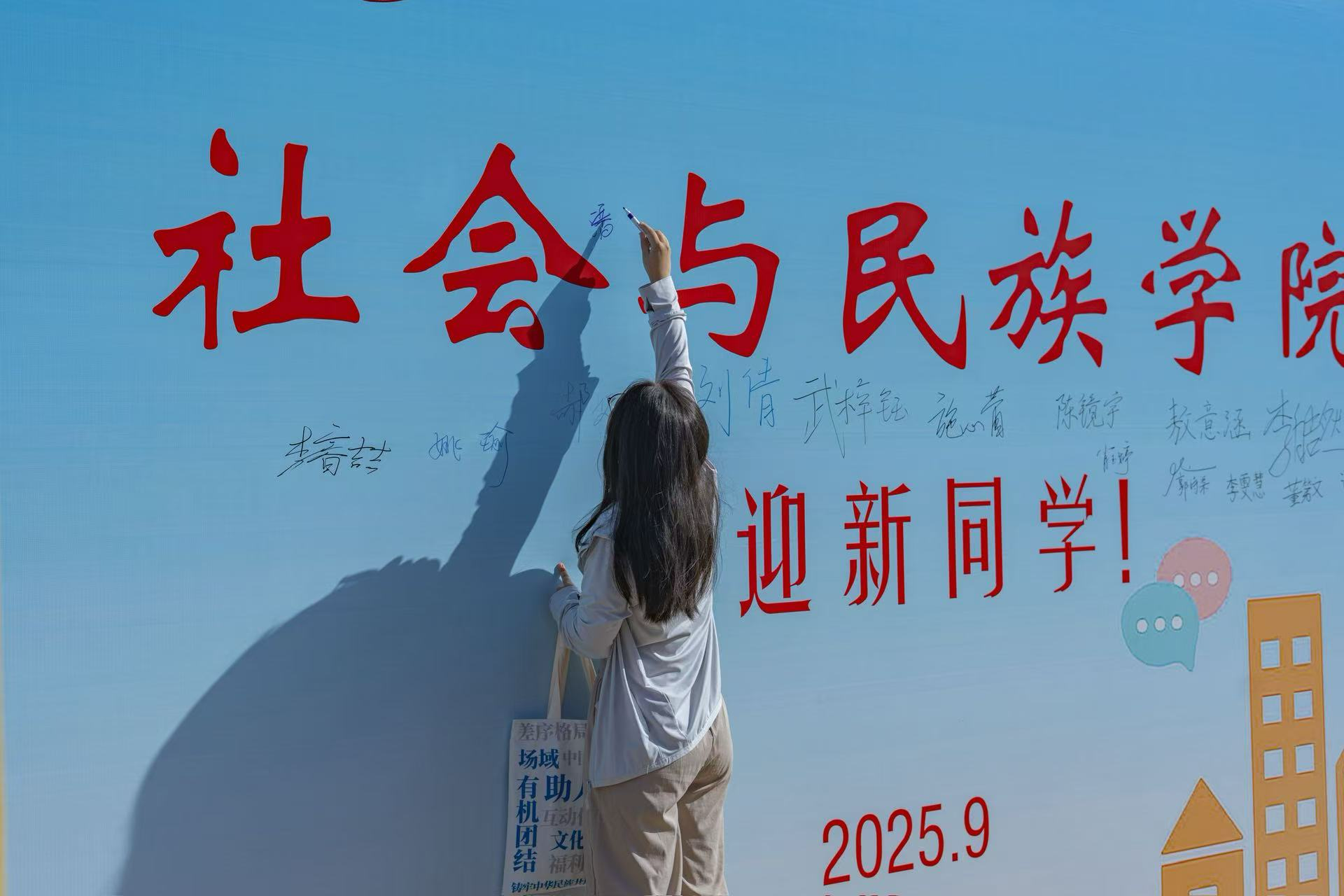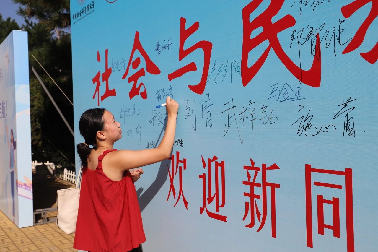 每位新同学们都怀揣着幸福与憧憬,纷纷在签字墙上留下姓名,满怀期待地迎来即将开始的大学生活。