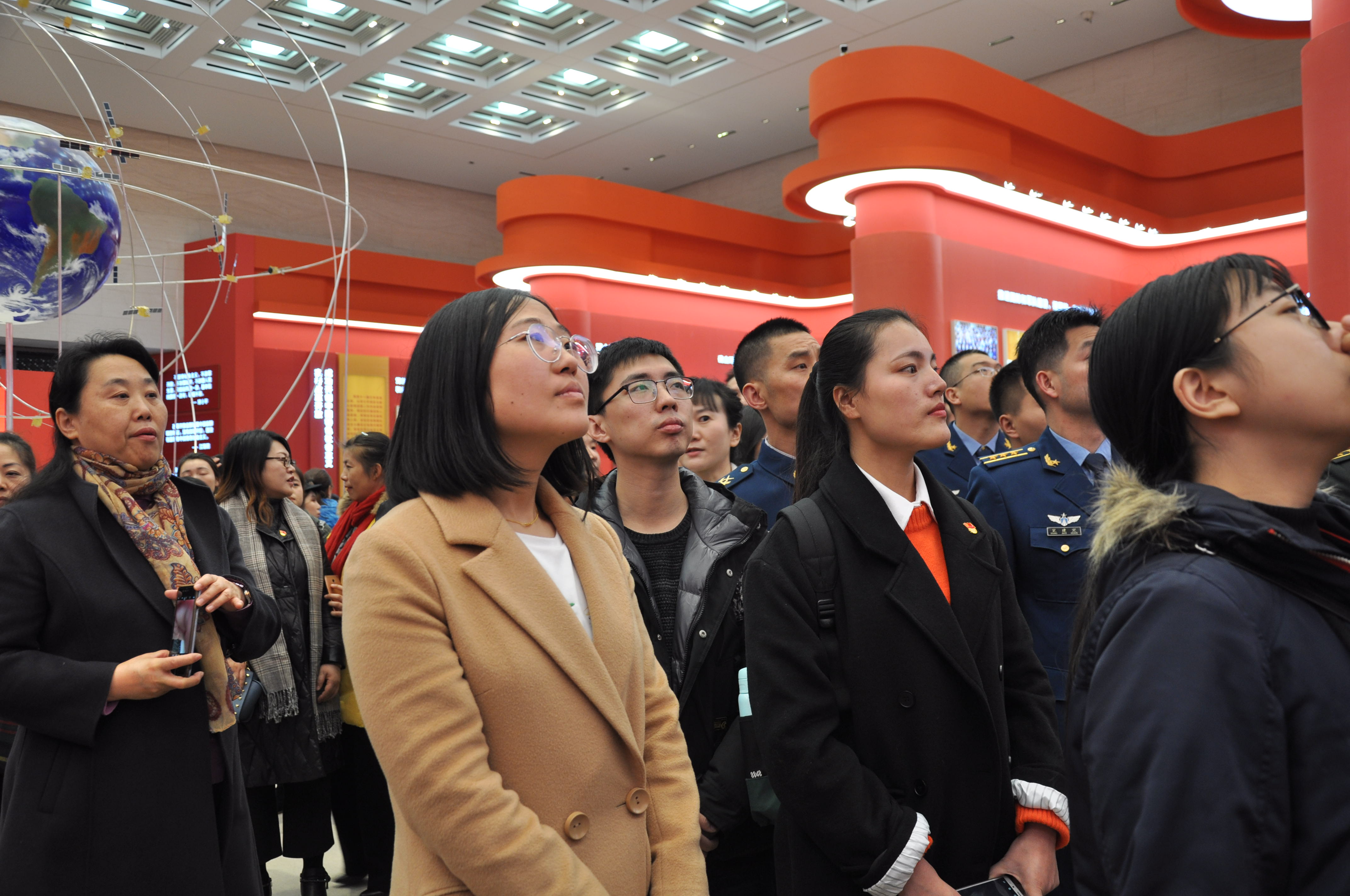 师生入馆后,首先参观的是第一展区“伟大变革”,观影后我们跟随讲解员一起来到“壮美篇章”展区,参观了“希望的田野”、“春天的故事”等七个单元,感受国家40年来农业、经济、地区的快速发展。接着映入眼帘的是“关键抉择”四个大字,在这个展区我们看到了国家从实行、推进、加快、全面深化改革开放到最后的高举中国特色社会主义伟大旗帜这一不断推进改革开放的战略擘画,这里不仅有蓝鲸一号和天然气水合物试采装置模型也有航空航天领域的装置模型,使参观者忍不住惊叹国家四十年来的巨变。