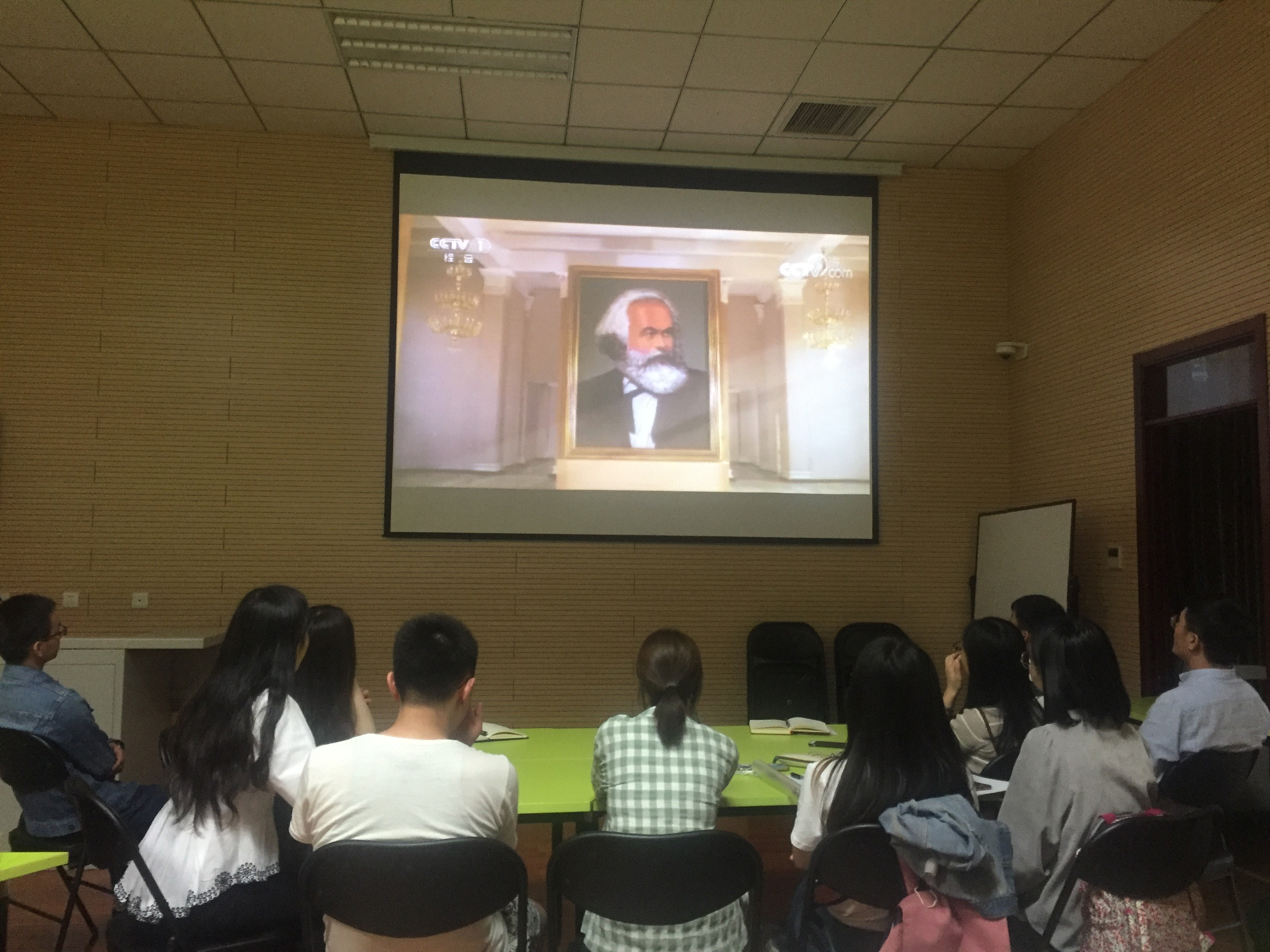会议伊始,全体党员观看了纪念马克思诞辰200周年的视频资料《不朽的马克思》,视频再现了马克思传奇伟大的一生,讲述了马克思的生平和马克思主义在中国的发展。