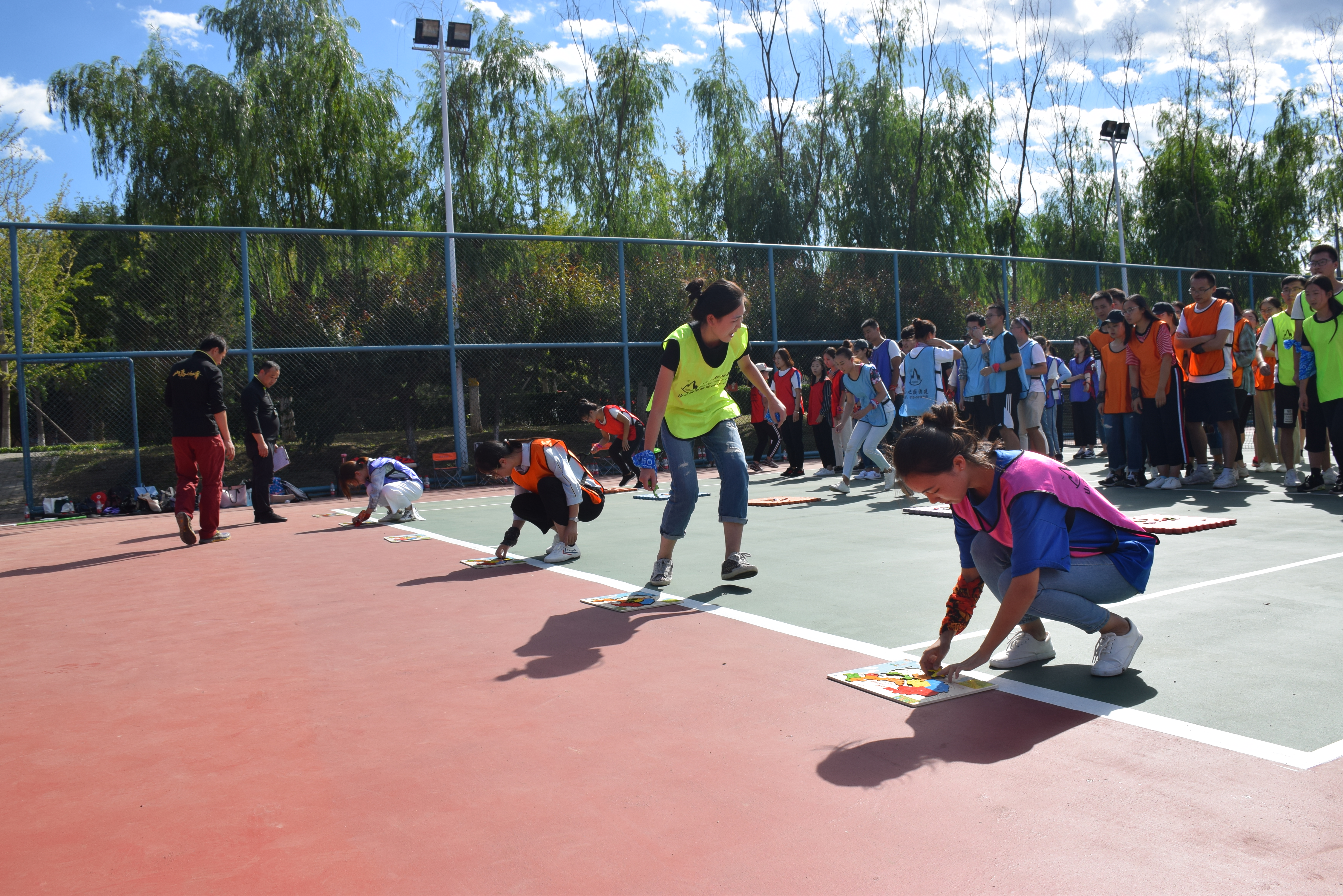 第二个环节是“中国拼图”。此项目分成两个部分,第一部分是每个团队通过与其他团队的谈判协商与交换,进而将自己手中并不完整的拼图组成一副中国地图。这个环节主要考验的是成员的沟通交流技巧。第二部分是六个团队分别同时进行拼图接力竞赛,考验的是成员间的团结协作与反应能力。