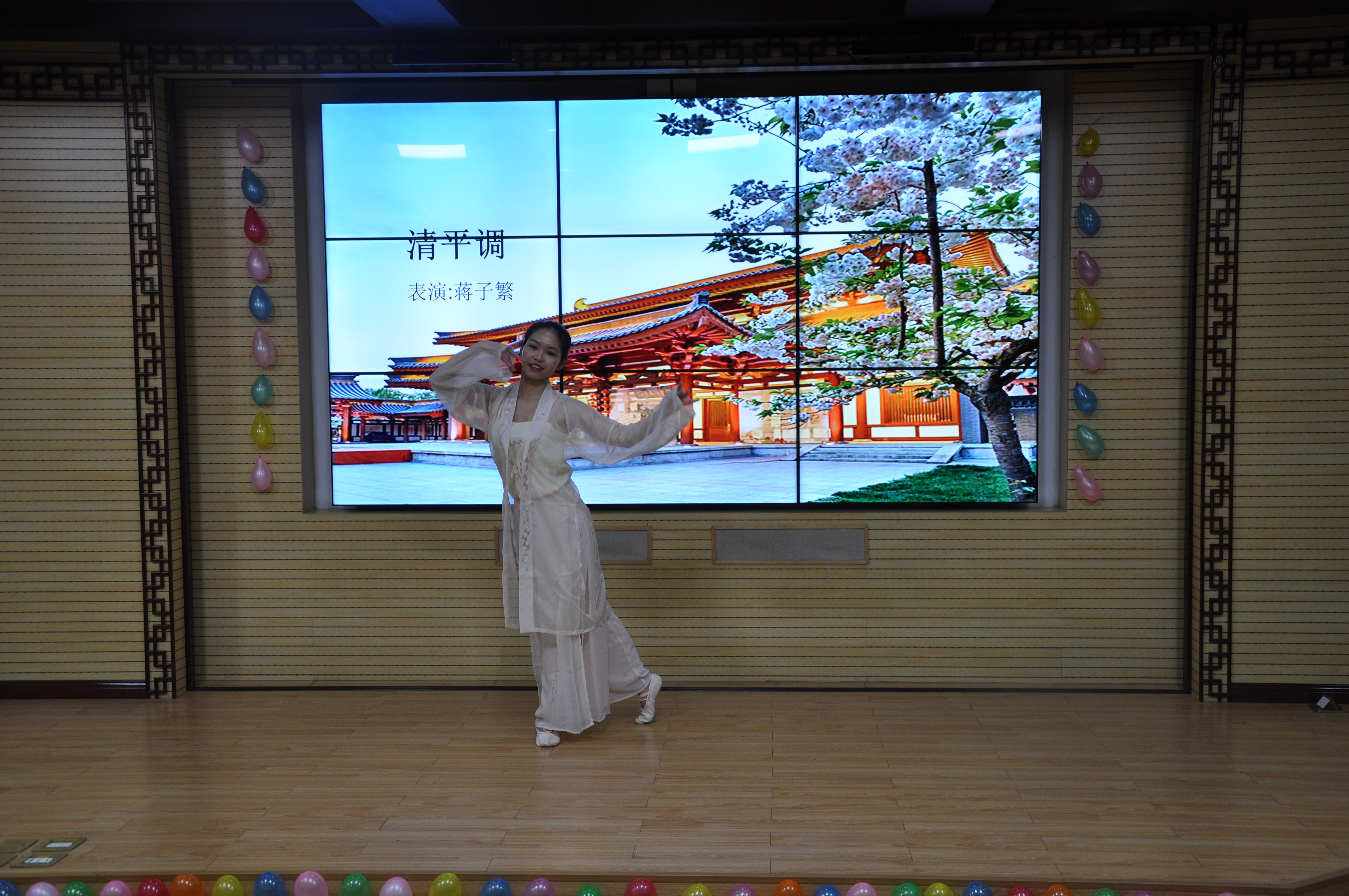 接下来,申丽鑫和蒋子繁两位同学优美的舞姿开场,温婉大气的《惊鸿舞》和淡而有味的《清平调》被两人诠释的入木三分;彭希贤演唱的《心动》和逄晓庆粤语歌曲《喜欢你》又把大家带到了青春悸动的情境中;骆晓凡同学的手语表演《爱的供养》使无声表演同样有力和美妙;随后王汝岳、姚佳敏女生版的《淘汰》和曹权同学的《男孩》引起全场合唱。游戏“害你在心口难开”全场气氛达到高潮,场上同学紧张热烈,场下同学加油打气,玩的不亦乐乎,参与人员都获得了纪念品。