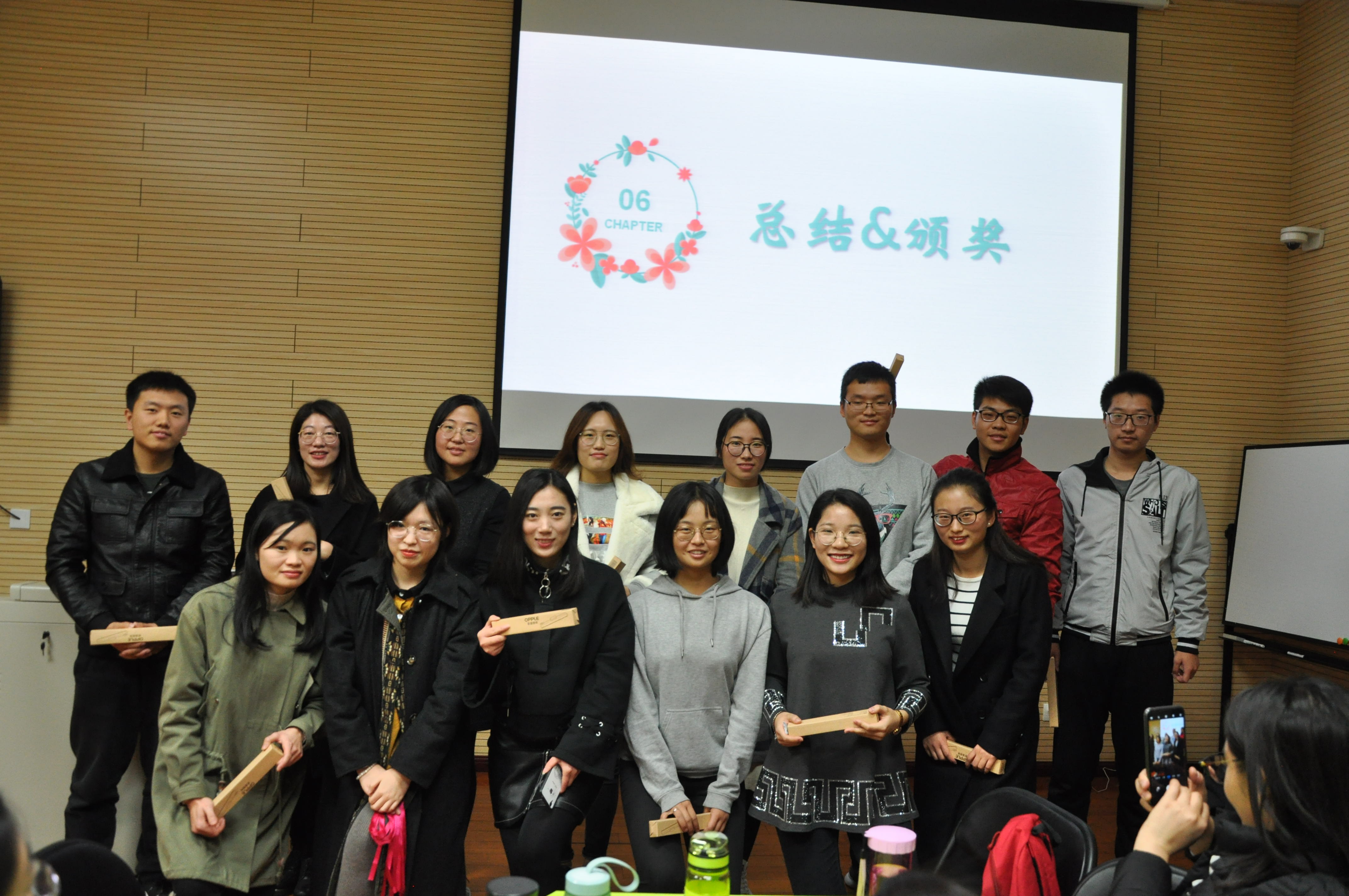 为增进同学之间的沟通和情感,交流会最后进行了游戏环节,大家在游戏“害你在心口难开”中各显神通、斗智斗勇,笑声不断,场上场下氛围热烈。两轮游戏结束后,赵宗宇老师和张天帅老师为游戏参与者颁奖并合影留念。