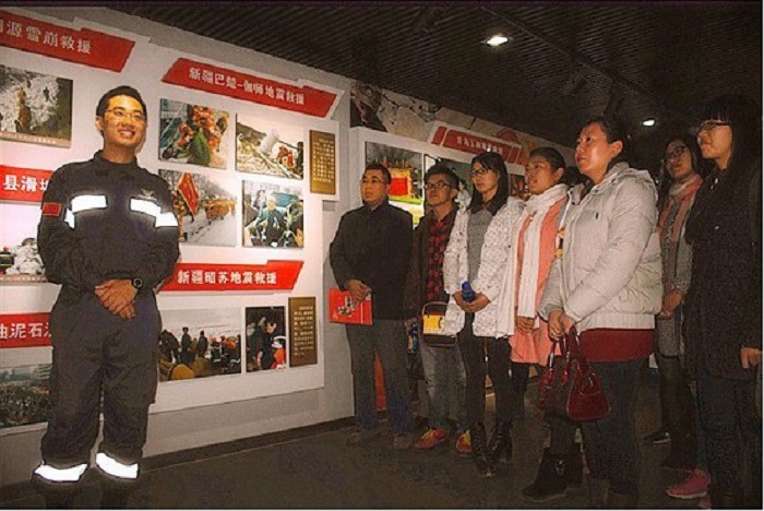 图:中心师生参观中国国际救援队荣誉展览