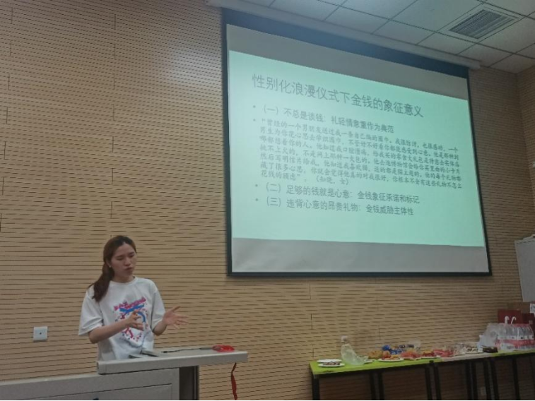 对于本次分享的研究,她从对恋爱中送礼时男女双方对礼物意义和价值的不同理解和矛盾入手,以莫斯的经典著作《礼物》、列维-斯特劳斯对礼物交换的观点、阎云翔的《礼物的流动》等研究作为理论来源,通过对十数位城市异性恋青年的访谈,发现了恋爱送礼作为一个性别化仪式,其中金钱的不同象征意义:(一)不总是谈钱:礼轻情意重作为典范;(二)足够的钱就是心意:金钱象征承诺和标记;(三)违背收礼者个性的昂贵礼物:金钱威胁主体性。以及在亲密关系中共有互惠时的金钱意义:(一)等额回礼:平等主体的自我预设;(二)不计较金钱:情感的纯粹表达;(三)礼物之外的花销:男多女少的性别逻辑。