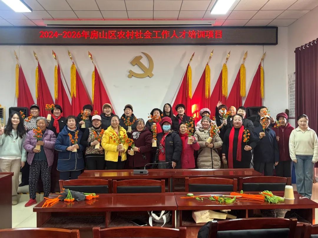 为推动“房山区农村社会工作人才培养项目”(以下简称乡工项目)落地实施,新澳彩论坛 乡工项目组与房山区社会工作者联合会一同走访调研了琉璃河镇周庄村。据村干部介绍,周庄村基础设施较为完善,村内的集体经济发展较好,村民有稳定的经济收入。村内老年人较多,占村总人口的三分之一,由于子女因工作或其他原因无法陪伴在侧,老人们的精神文化生活较为匮乏。他们日常娱乐方式有限,多局限于聊天、看电视等常规活动,缺乏新鲜有趣的互动体验。临近春节,村干部希望我们能联合周庄村的乡工一起为本村的老年人开展一场喜气洋洋的手工制作活动。