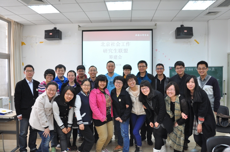 “北京社会工作研究生联盟”是一个由社会工作专业研究生自发组建的学生团体。该联盟本着“资源信息共享、相互学习支持”的宗旨,为各北京高校社会工作专业研究生搭建了一个学术交流和就业发展的平台,后期将进一步开展一系列的讲座、沙龙、论坛、招聘等活动。