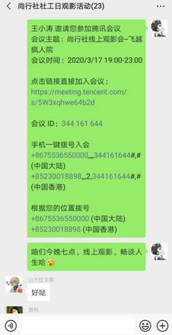 每年三月份的的第三个星期二为“世界社会工作日”,2020年3月17日,为了让同学们能够更加了解社工、走近社工服务对象、了解特殊群体的生活和需求,尚行社围绕世界社工日主题,组织了线上观影会。本次线上观影会观看影片为《飞越疯人院》,参与者共23人。影片放映过程中,随着剧情的发展,也将同学们的情绪带入高潮,引发大家的思考与讨论。