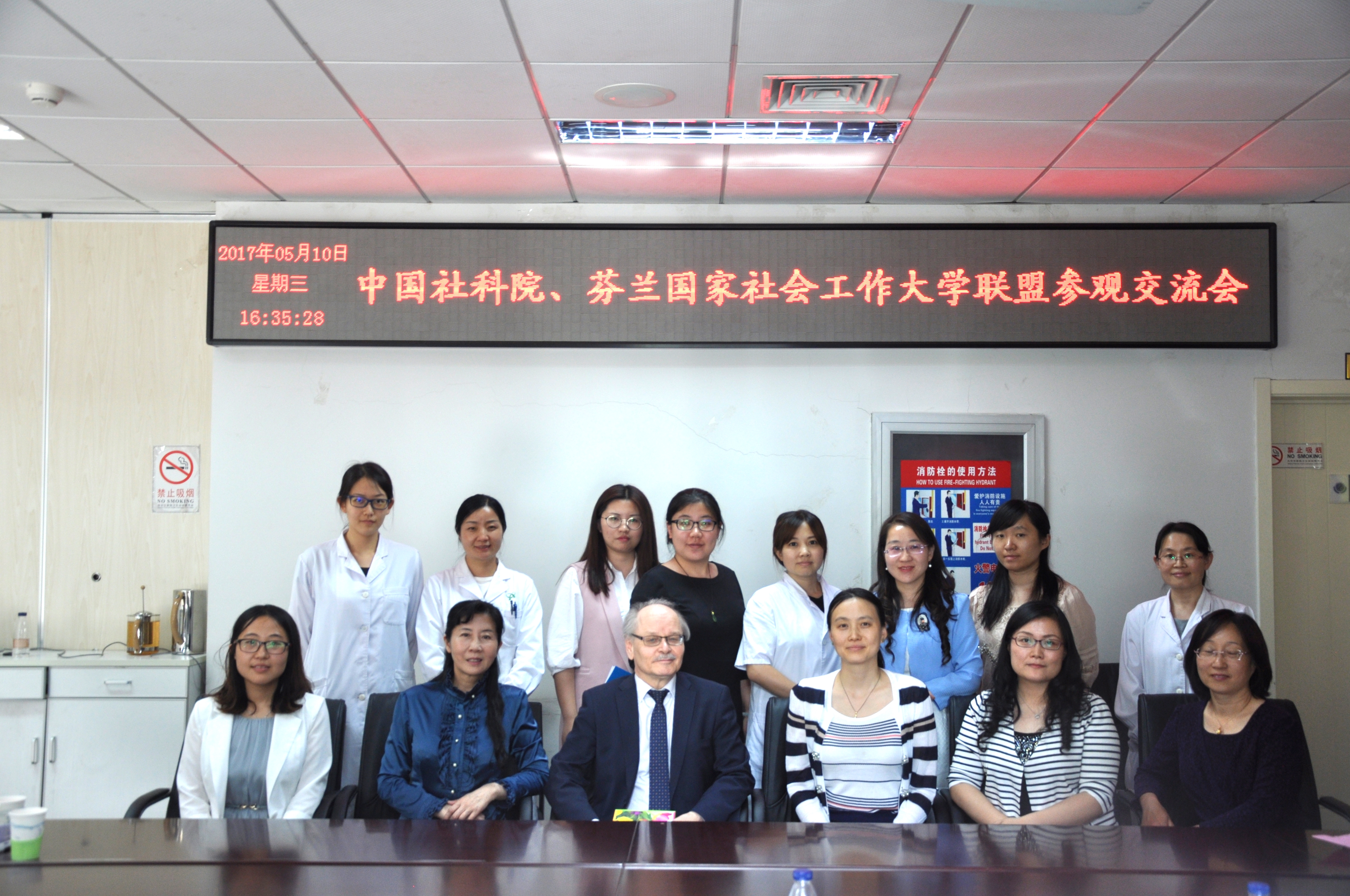 同天下午,赵一红教授一行人陪同Juha教授前往北京大学第六医院进行参访。首先,北医六院院长介绍了医院的总体情况,随后康复中心主任就该院医务社会工作的开展进行详细报告,该院在帮助患者进行精神健康康复过程中,主要致力于将机构照顾模式向社会模式转化,采用多学科团队的形式,医生作为主导角色制定治疗方案,同时由社工采取个案管理、团体治疗、同伴协助等方式,使康复中心具有社会工作的功能。随后双方就相关报告中的疑问进行了热烈讨论。最后,北医六院外事处主任带领赵一红教授和Juha教授对整个院区进行了参观,Juha教授表示对于中国社会福利和精神社会工作的现状和发展有了深切的认识,并且希望在今后中芬两国的社会工作教育中开展更多的合作。