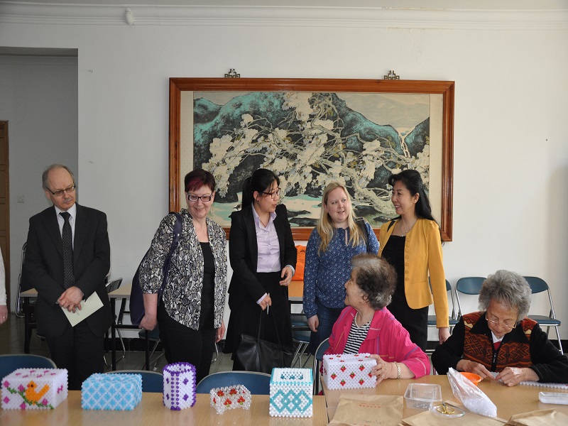 此外,为更深入的了解中国老年社会工作及社区社会工作的现状,芬兰师生在MSW教育中心主任赵一红教授陪同下参观了四季青敬老院,听取了敬老院一线服务人员对机构老人照护的服务设施、人员配置、服务经验等全方面的介绍,并对入院老人进行探访;在MSW教育中心副主任刘文瑞博士陪同下参访了北京市朝阳区建国门街道社区服务中心,通过实地走访切实感受我国城市社区的发展状况及社区社会工作的进展情况。