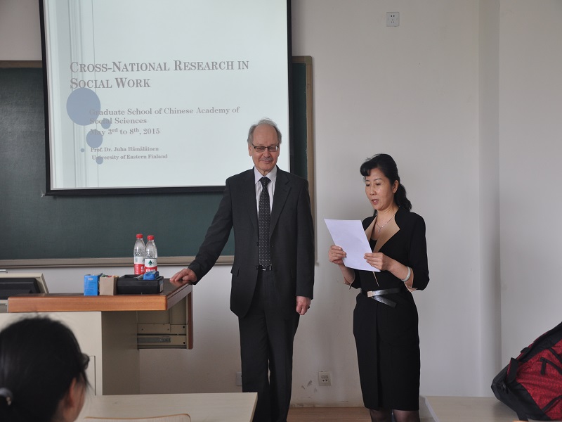 图为芬兰国家社工大学联盟主席Juha Hämäläinen教授专题研讨——社会工作跨民族研究