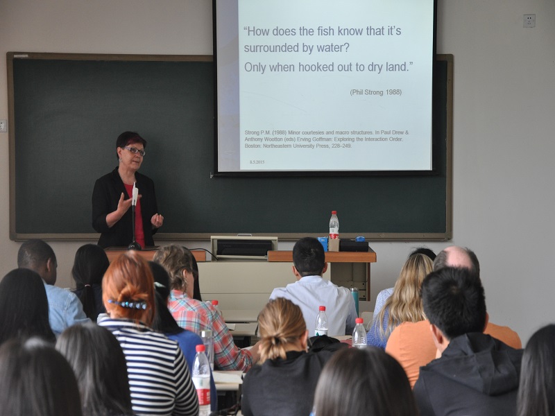 图为芬兰国家社工大学联盟副主席Marjo Kuronen教授专题研讨——社会工作的跨民族研究