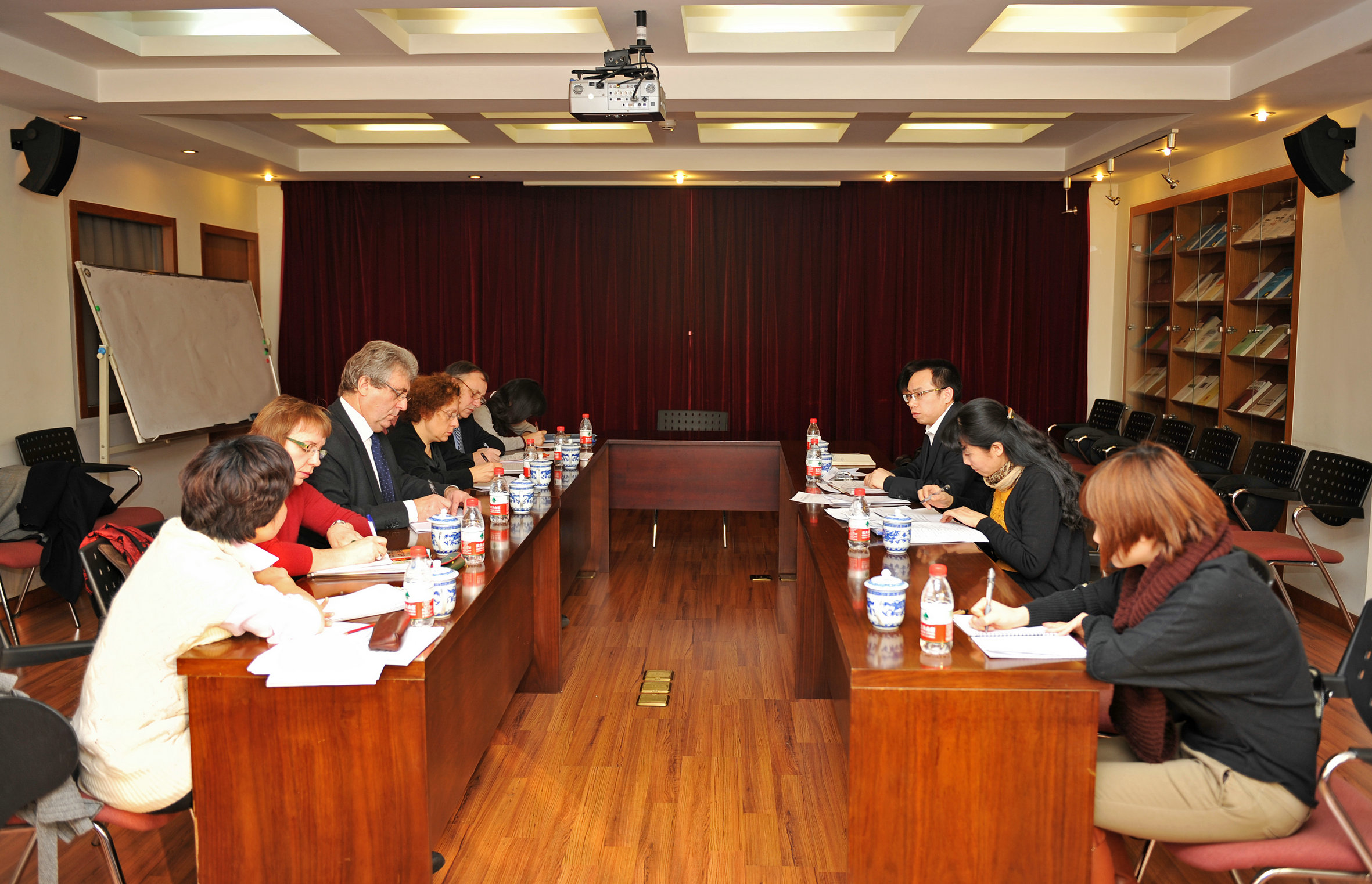 21日上午,在法国大使馆社会事务参赞的陪同下,三位法国专家与国家民政部人事司(社会工作司)社会工作处黄胜伟处长、曾宪才主任科员等代表进行学术交流。国家民政部人事司(社会工作司)社会工作处黄胜伟处长从五个方面介绍了我国社会工作发展的基本情况和我国政府社会工作发展的思路。随后双方合作意向围绕社会工作研究、社会工作教育培训、社会工作专业服务三个方向展开。