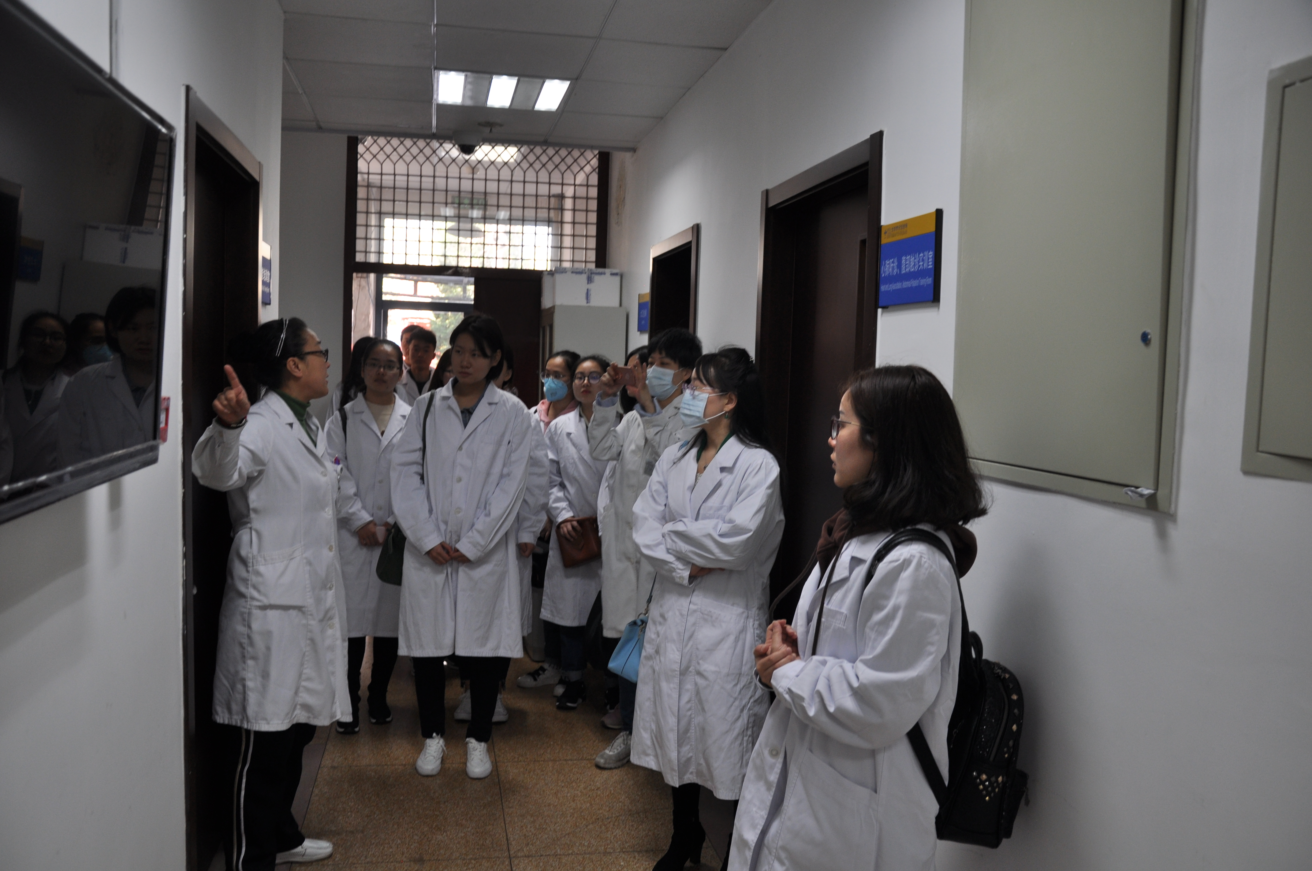 讲座结束后,北京世纪坛医院医务处吴薇主任为同学们讲解了医院参观须知,鼓励同学们在参观过程中思考医务社会工作可以在哪些科室介入开展服务。同学们分为三组由医院医务处老师带领,分别参观了中医科,动物实验室,临床技能培训中心以及中心实验室。首先,同学们来到中医科,护士长齐宁宁为同学们简单介绍了中医科的概况,其专业化的发展方向以及特色治疗。同学们参观了中药熏蒸室,特色综合治疗室,以及观摩了耳尖放血治疗。接着,同学们来到了动物实验楼参观,负责动物实验的仝永娟医生为同学们简单介绍了动物实验楼的基本结构,以及需要注意的事项。仝医生带领同学们参观了动物实验室并回答了同学们在参观过程中的疑问。随后,同学们接着参观了医院的临床技能培训中心,急诊科的医生为同学们讲解和演示了心肺复苏的过程和技巧,并带着大家参观了各种医学培训的仿真模型和器材。最后,同学们参观了医院的中心实验室,杨医生为同学们讲解了基础研究的相关知识,以及中心实验室的功能与作用。