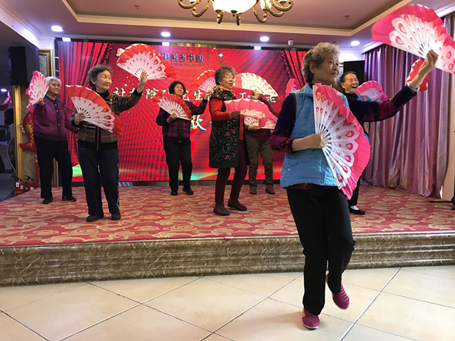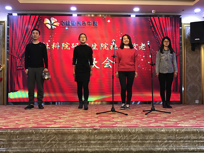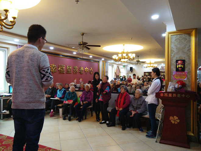 9:30左右,参观结束后,中心学生与老人们举行了敬老联欢会。同学们借此机会向幸福里养老中心的老人们表演了精彩的娱乐节目,向老人们献上了我们最诚挚、最温暖的关爱之情。