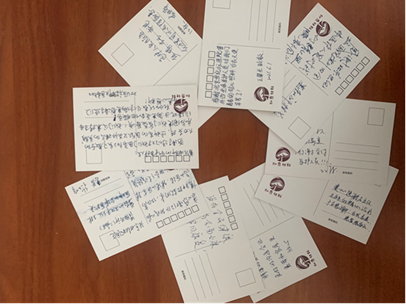 活动期间,医务社工进入病房,与患者交流病情,向患者了解住院前以及住院后的心理变化和目前的需求;让患者畅所欲言,鼓励他们把心中的烦恼讲出来,为压力提供疏解渠道;同时鼓励同病房病友分享治疗过程中的注意事项,让新入院的患者更快进入角色;医务社工还为每位病人送上一份绿植,和他们共同种植,并鼓励他们对自己充满信心;另外,社工同学组织患者把想对医护人员表达的感谢以及建议或对家人想说的话写在明信片上,社工收集后转达给相应人员。此外,在与患者沟通与观察的基础上,医务社工对典型个案整理出了平行病历交给肠胃科的医护人员,希望可以从医学人文角度出发,对病人在心理与生理上进行同步治疗。
