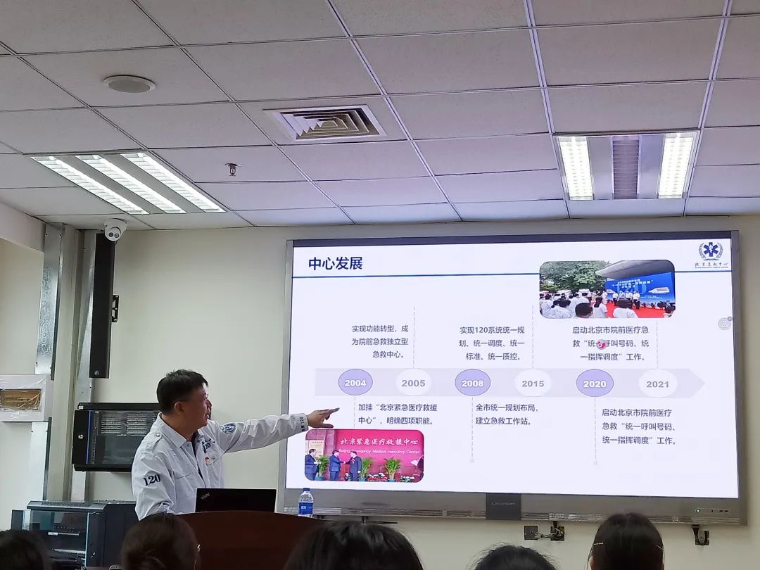 22级社会工作硕士研究生前往北京120急救中心进行现场教学。此次现场教学由北京急救中心副主任王勇老师带领,主要为了提高同学们自救互救的意识,学习和掌握日常生活中的急救知识和技能。