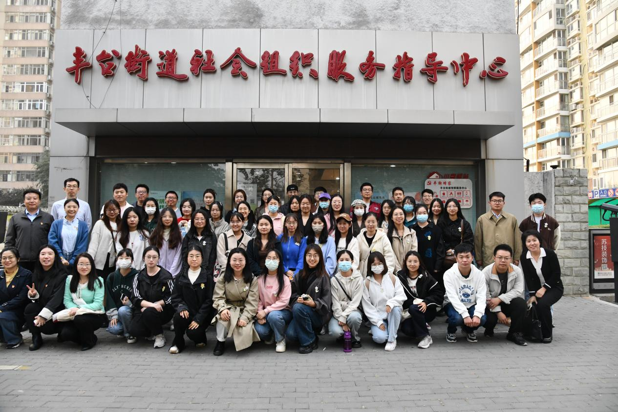 2023级社会工作硕士研究生迎来了一堂特殊而别开生面的“高级微观社会工作实务课”。在周少贤老师和郑玲老师的带领下,同学们来到丰台区瑞丰社会工作服务中心进行实地参访和实践教学,现场观摩、了解社工机构的工作,体验社工实务的乐趣。