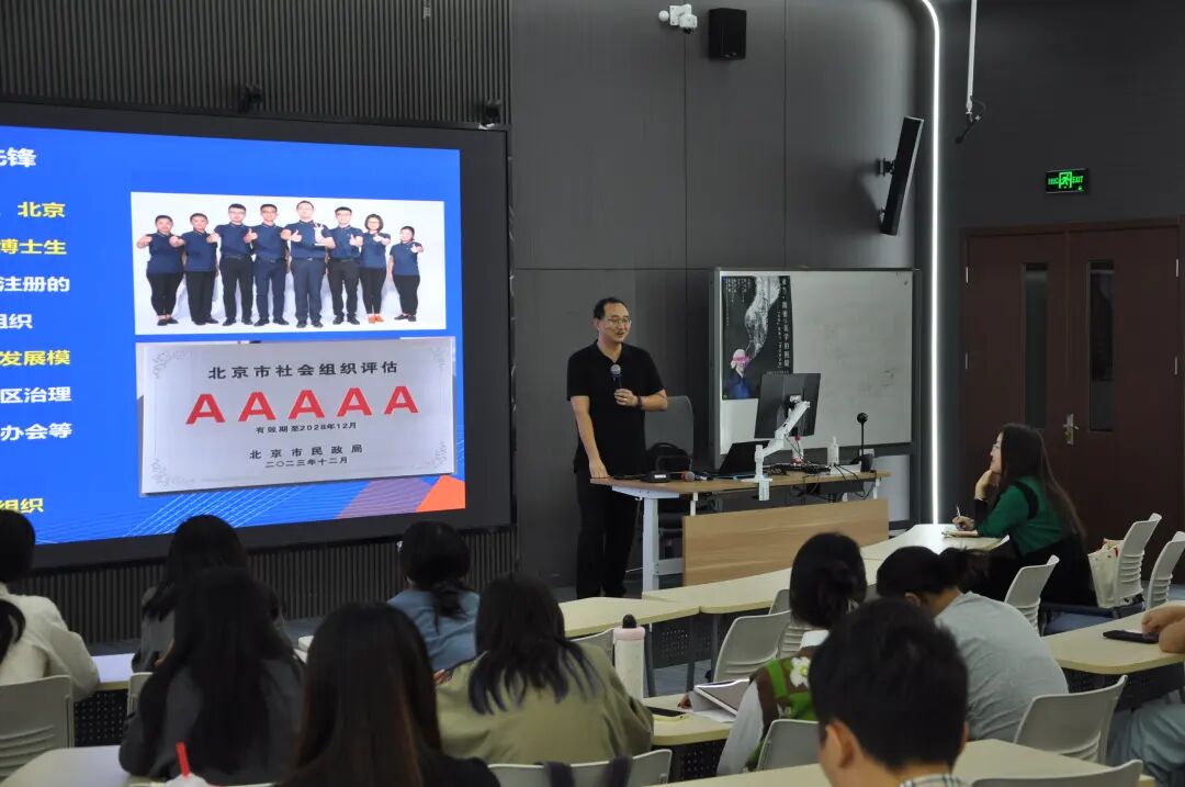张老师首先娓娓道来,分享了自己的公益创业之路。他谈到,在北京邮电大学就读大三期间,了解到学校设有公益项目资助计划,这与他“助人自助”的理念高度契合。同时,依托于北京邮电大学“信息黄埔”的基因,以及信息时代的到来为老年人带来了巨大的冲击与困境,于是在2011年创立志愿团队,开展教老人学电脑的服务,有效缓解老年人融入快速信息化社会的困境。经过数年志愿服务的持续耕耘,团队克服重重困难,于2015年成功注册为社会组织。历经十余年发展,夕阳再晨已从最初的学生志愿团队成长为5A级社会组织,张老师也荣获全国向上向善好青年、中国好人、首都榜样等多项荣誉。
