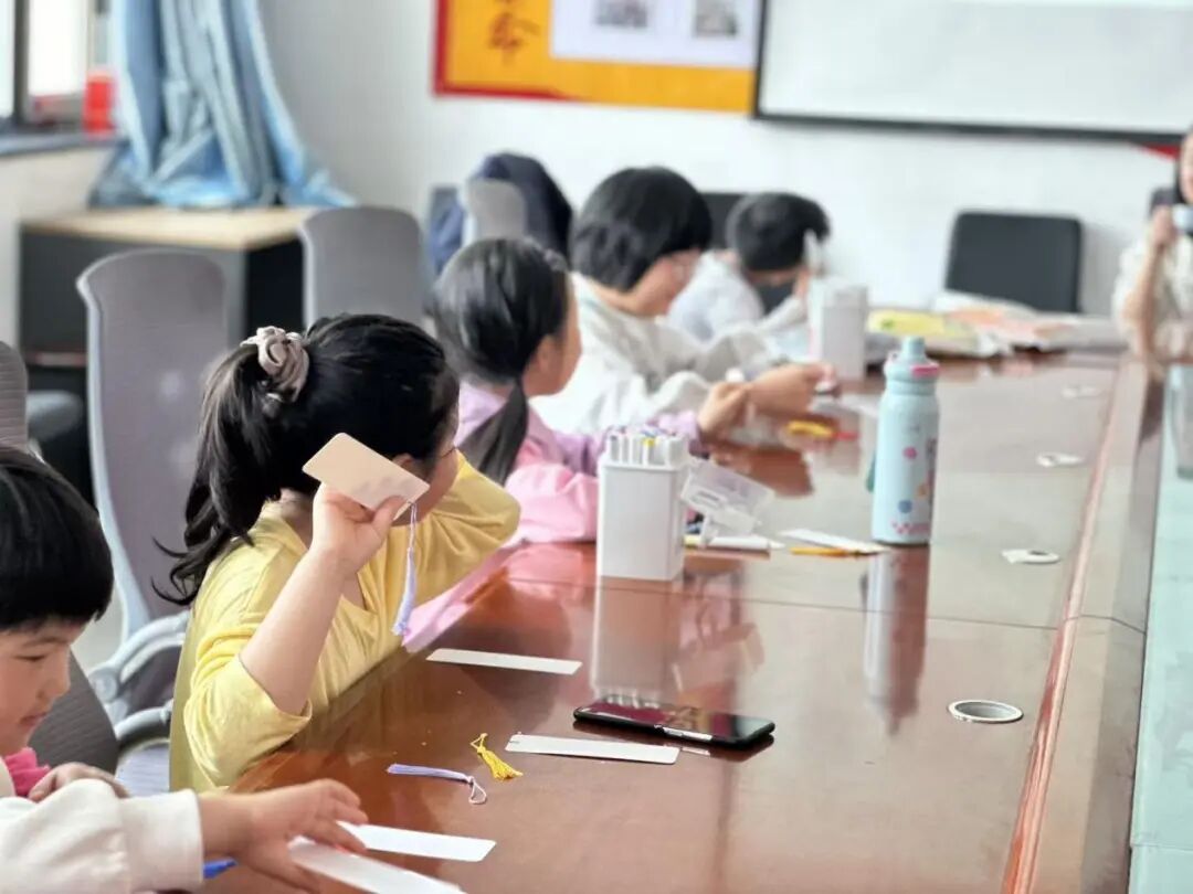活动现场温情满满,一位小朋友在制作书签时,特意结合所学英语内容,为今天过生日的爷爷精心制作了一张生日祝福英语书签,用稚嫩真诚的英文写下祝福,把课堂知识化作暖心孝心,这份温暖与创意打动了在场的每一个人,让英语学习更有温度、更有意义。作品完成后,孩子们自信登台,手持专属书签大声朗读单词与句型,大方分享创作思路。社工对每一位孩子的表现给予充分肯定与鼓励,大家互相鼓励、交流学习,现场气氛热烈温馨。