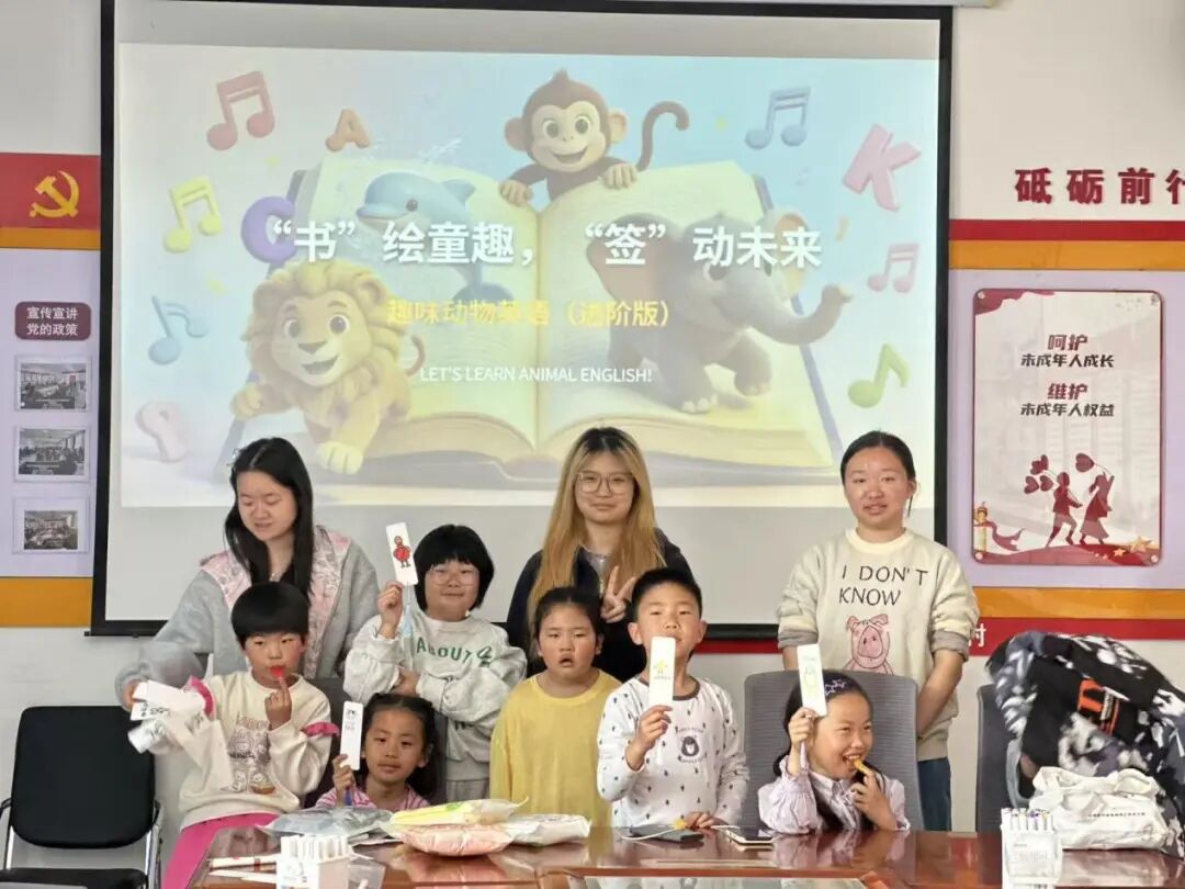 活动最后,社工对本次活动进行总结,带领全体参与的孩子与亲手制作的书签合影留念,定格快乐学习的美好瞬间。孩子们拿着独一无二的英语书签,脸上洋溢着满满的成就感与喜悦。此次英语单词书签DIY活动,以游戏化学习及发展性社会工作理念为指引,把枯燥的英语学习转化为有趣的手工体验,不仅帮助孩子们扎实掌握农场动物相关英语词汇,提升动手能力与语言表达能力,更有效激发了他们的学习兴趣与自信心。未来,乡工项目组将继续聚焦农村儿童成长需求,持续开展更多寓教于乐、形式多样的活动,用专业社工服务守护儿童健康快乐成长,助力打造更有温度、更具活力的乡村儿童友好社区。