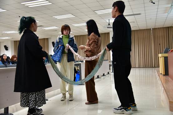 随后,王老师为大家详细讲解了萨提亚模式的基本观点,即如何看待事物本来的样子以及如何看待问题和家庭的本质。为了让同学们更好地理解萨提亚模式的核心观点,王老师邀请了三位同学上台演示了家庭中父母和子女之间的关系,让同学们更加直观地感受到家庭中存在的复杂关系和情感。
