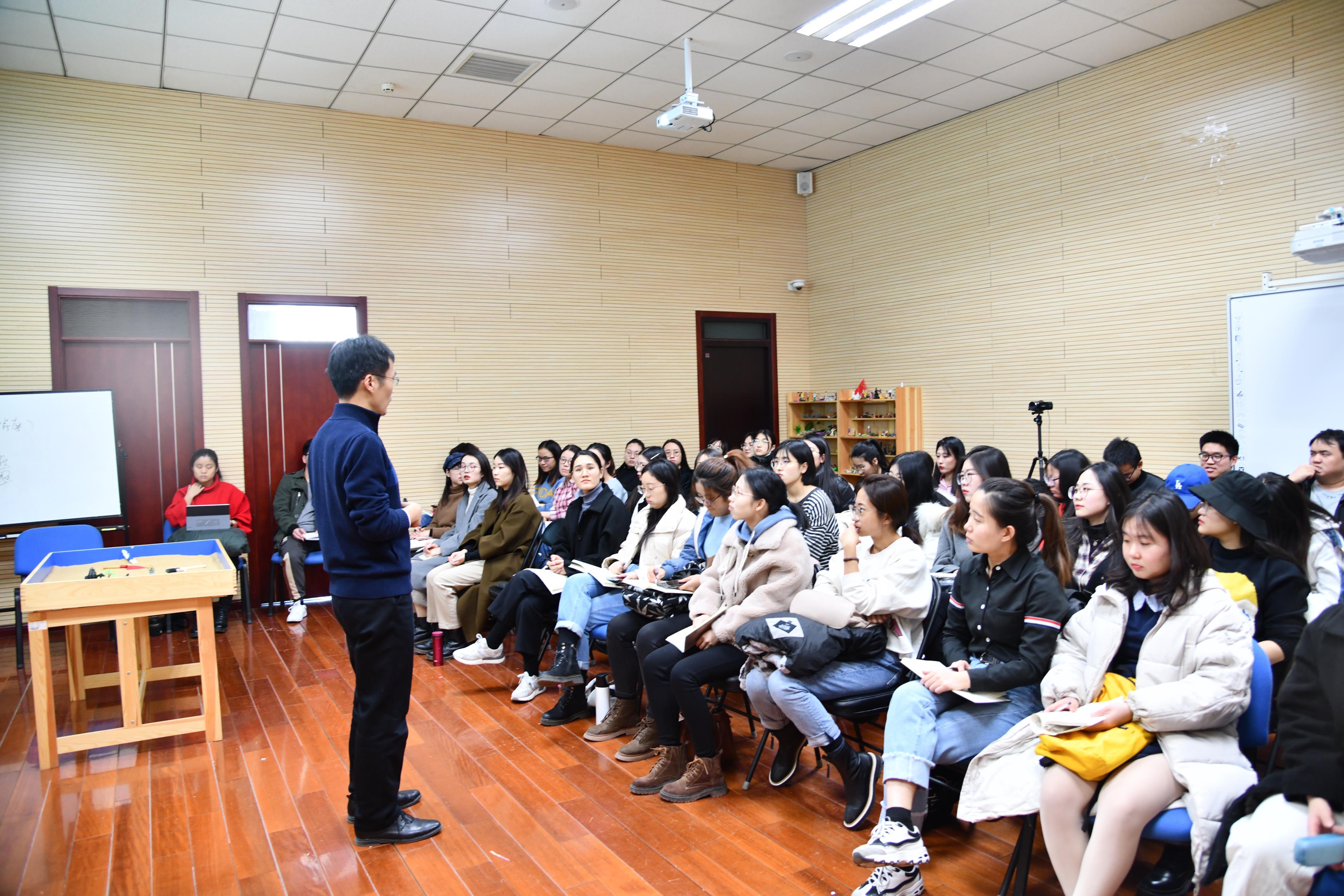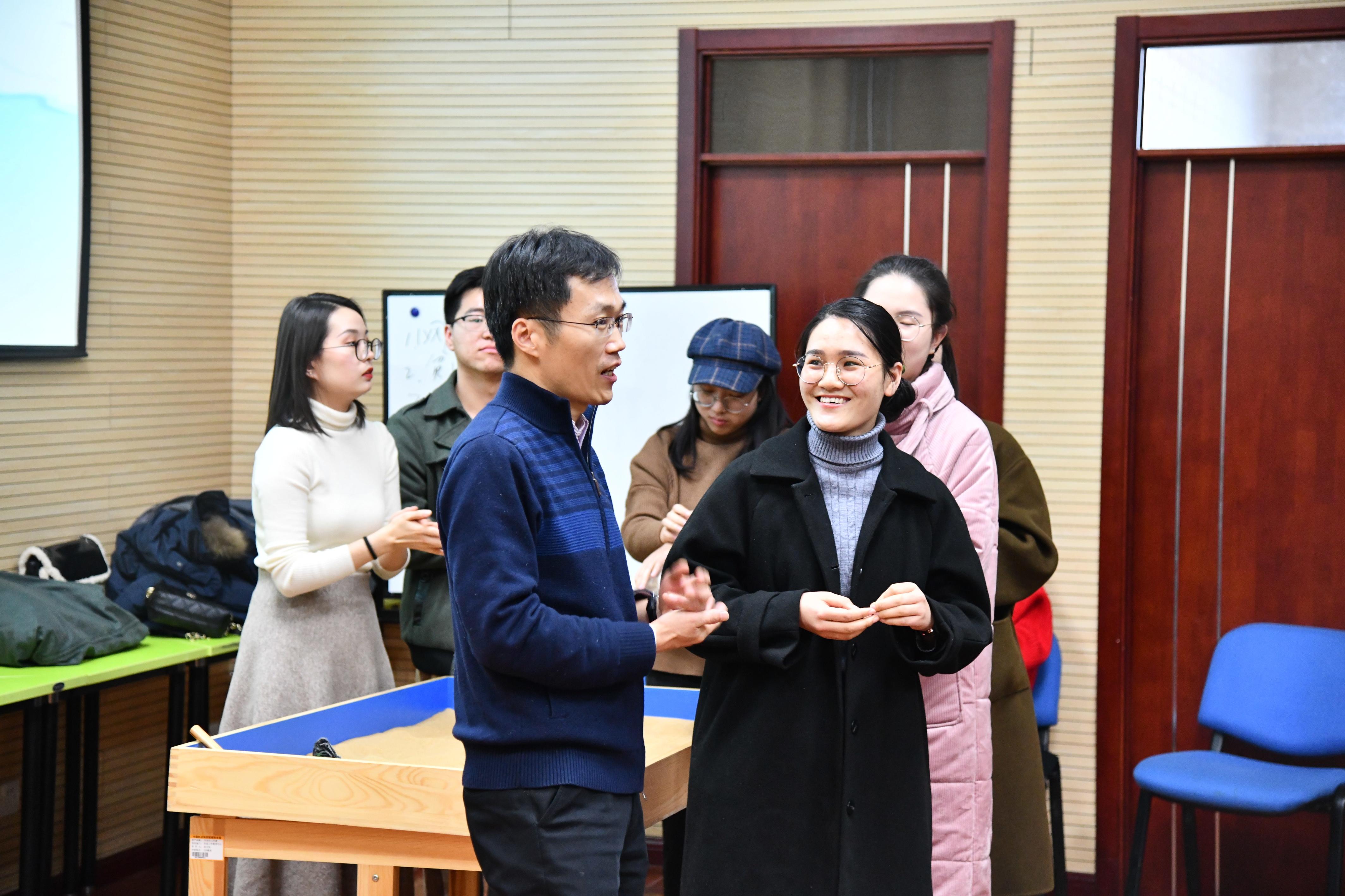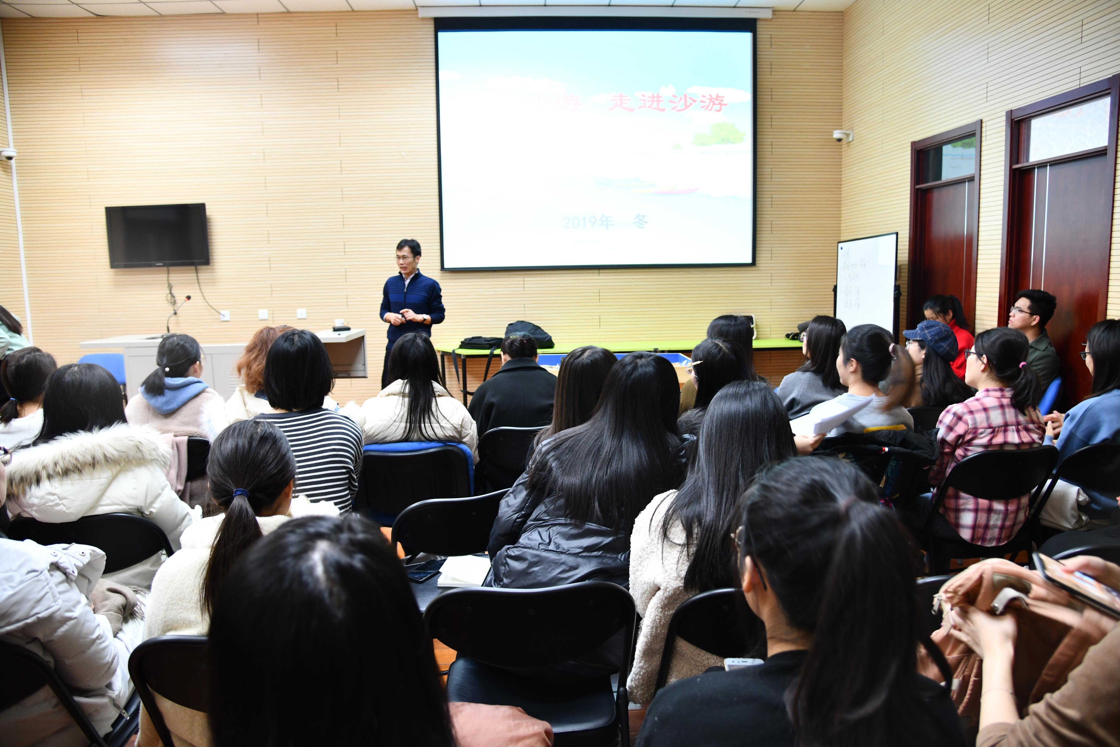 首先,讲座开始前,田教授带领大家做了全身心的冥想,感受完全放松的自己。随后,通过让大家回忆关于“沙子、水、泥土”的记忆,分享体验玩沙的奇妙感觉,引出沙具有塑形、整合、回归和治疗的作用,体悟人人都可以成为心灵的探索者和建筑师。