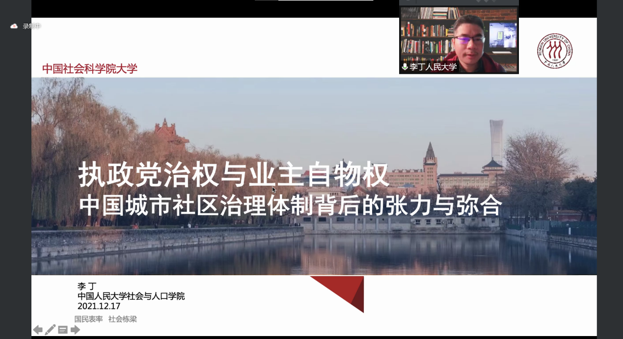 副教授,中国社会政策研究院秘书长李丁老师来到笃学讲堂,并带来了题为“执政党治权与业主自物权——中国城市治理体制背后的张力与弥合”的讲座。温莹莹副教授主持了本次讲座。