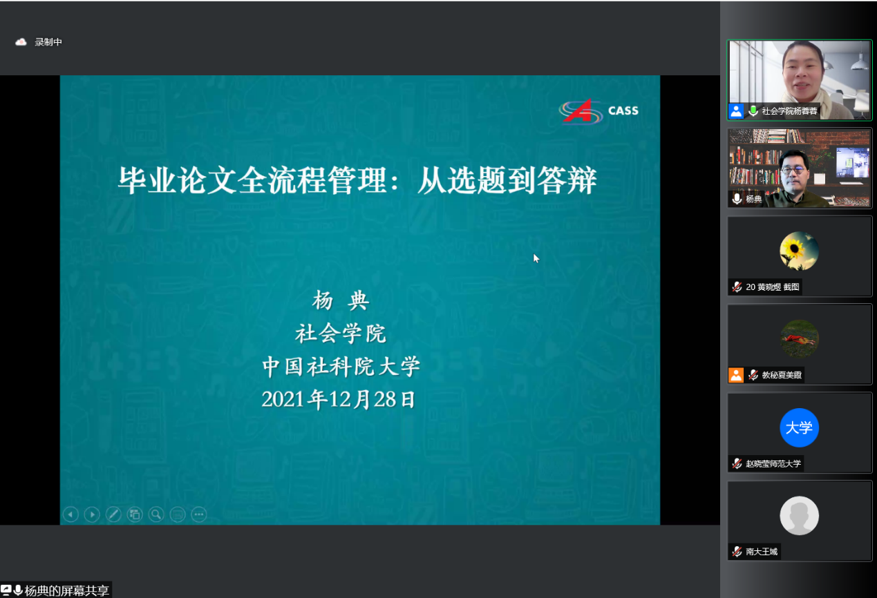 副院长、社科院社会学所副所长、《社会学研究》编辑部主任杨典老师于线上进行了题为“毕业论文全流程管理:从选题到答辩”的专题讲座。社科大社会新澳彩论坛