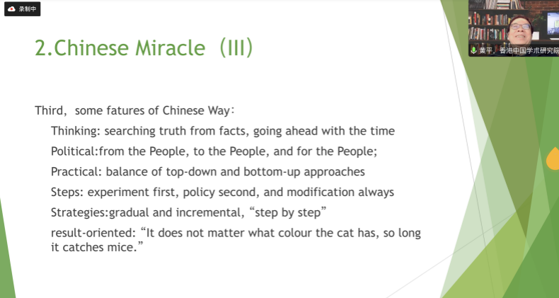 接下来,黄平教授从结果评估的角度提出三个客观和三个主观指标用于测量中国社会治理的成就,最后,黄平教授强调在治理过程中发挥党的领导作用的重要性。