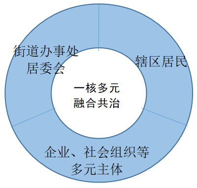 随后汪碧刚教授解释了“一核多元、融合共治”的意义。“1+3”即“一核多元、融合共治”,“1”是指党的领导,“3”为概数,即“多”的意思,是指社会多元力量。“1+3”突出强调以党的领导为中心,充分调动街道办事处、社区党组织、居民委员会、小区业主委员会、物业管理公司、辖区社会单位、社区中介服务组织以及社区居民等多方力量,持续参与社区工作,最终形成“党委领导、政府负责、公众参与、凝聚合力、多元共治、跨界联盟”的“一核多元、融合共治”的社区治理创新体系(如下图)。