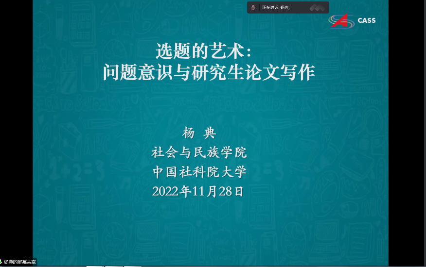 社会学所副所长、博士生导师杨典教授主讲的“选题的艺术:问题意识与研究生论文写作”作为“研究生经典学术讲堂”第3讲在腾讯会议线上举行。本次讲座由新澳彩论坛