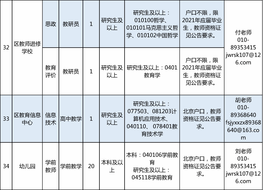 4.幼儿园岗位先由区教委统一招聘,暂不能确定具体招聘单位。待2021年9月生源情况统计完成后公布各幼儿园拟招聘的岗位数量,届时将向本岗位公示无异议人员提供双向选择和调剂机会。