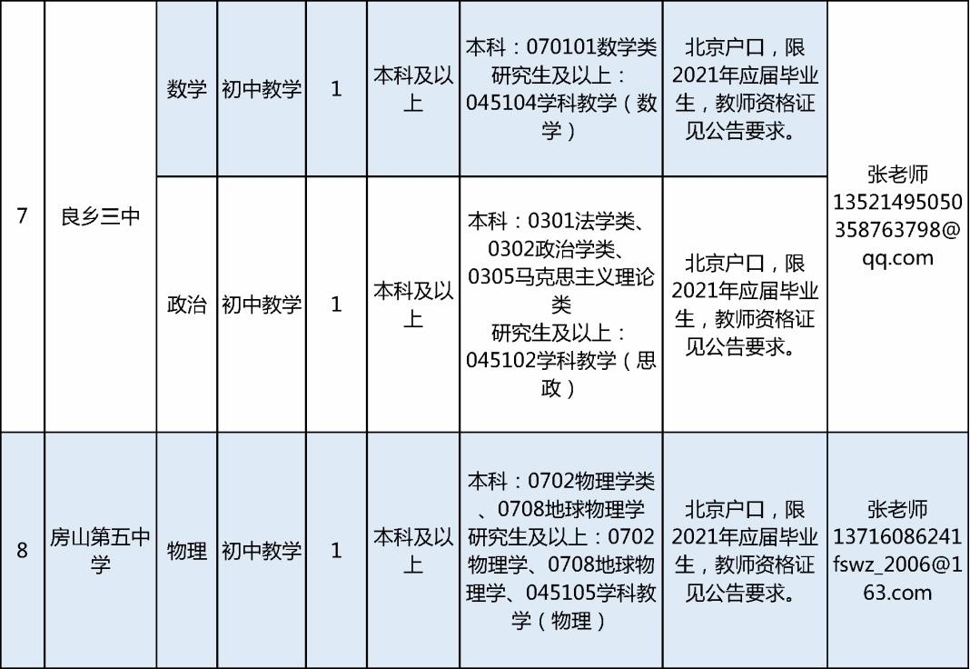 (1)北京生源毕业生要求北京市常住户口且人事行政关系及档案在京(不含户口及档案留在毕业学校的非京生源毕业生);中小学岗位本科学历要求列入国家统一招生计划(不含定向、委培,与房山教委签订定向培养协议的首师大2020年毕业生除外)、研究生及以上学历要求统招并取得相应学位且能正常派遣;2020年1月1日至报名时取得国(境)外学位并经过国家教育部留学服务中心认证、未落实工作单位的留学回国人员;幼儿园教师需具有学前教育专业本科及以上学历并取得相应学位。