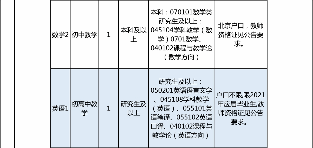 (2)非北京生源要求须是列入国家统一招生计划、取得相应学位并正常派遣的硕士及以上学历的2021年应届毕业生(不含定向、委培),在校期间所修科目成绩无补考记录,上学期间无社保缴纳记录;本科阶段要求列入国家统一招生计划并取得相应学历学位;符合北京市非京生源引进落户条件。非京籍回国留学人员要求符合北京市人才进京落户条件。