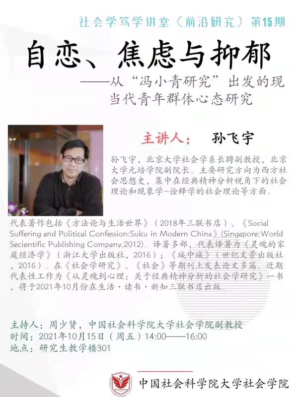 社会学笃学讲堂(前沿研究)第15期—孙飞宇:自恋、焦虑与抑郁