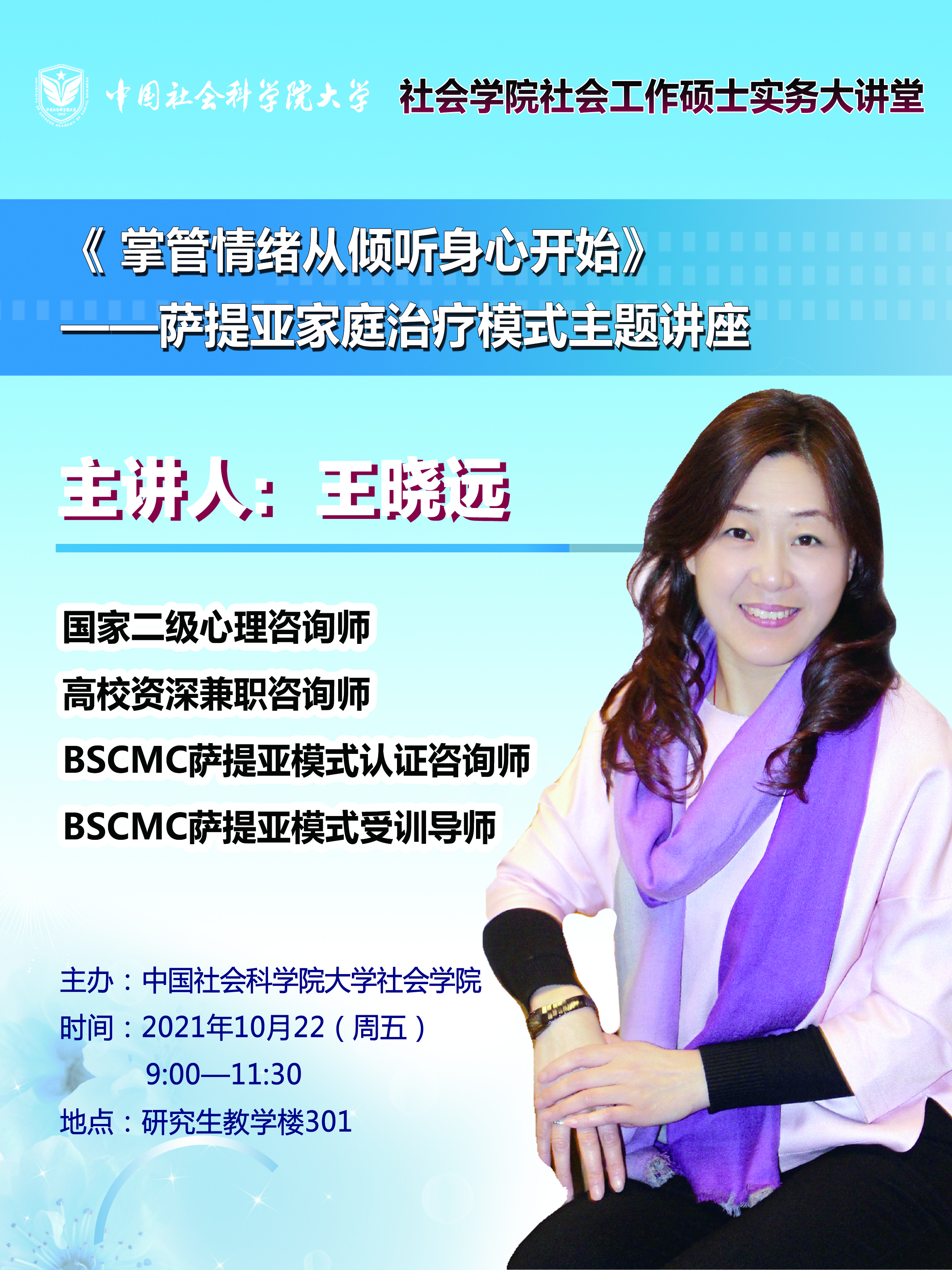 社会工作实务大讲堂—王晓远:《掌管情绪从倾听身心开始》—萨提亚家庭治疗模式主题讲座