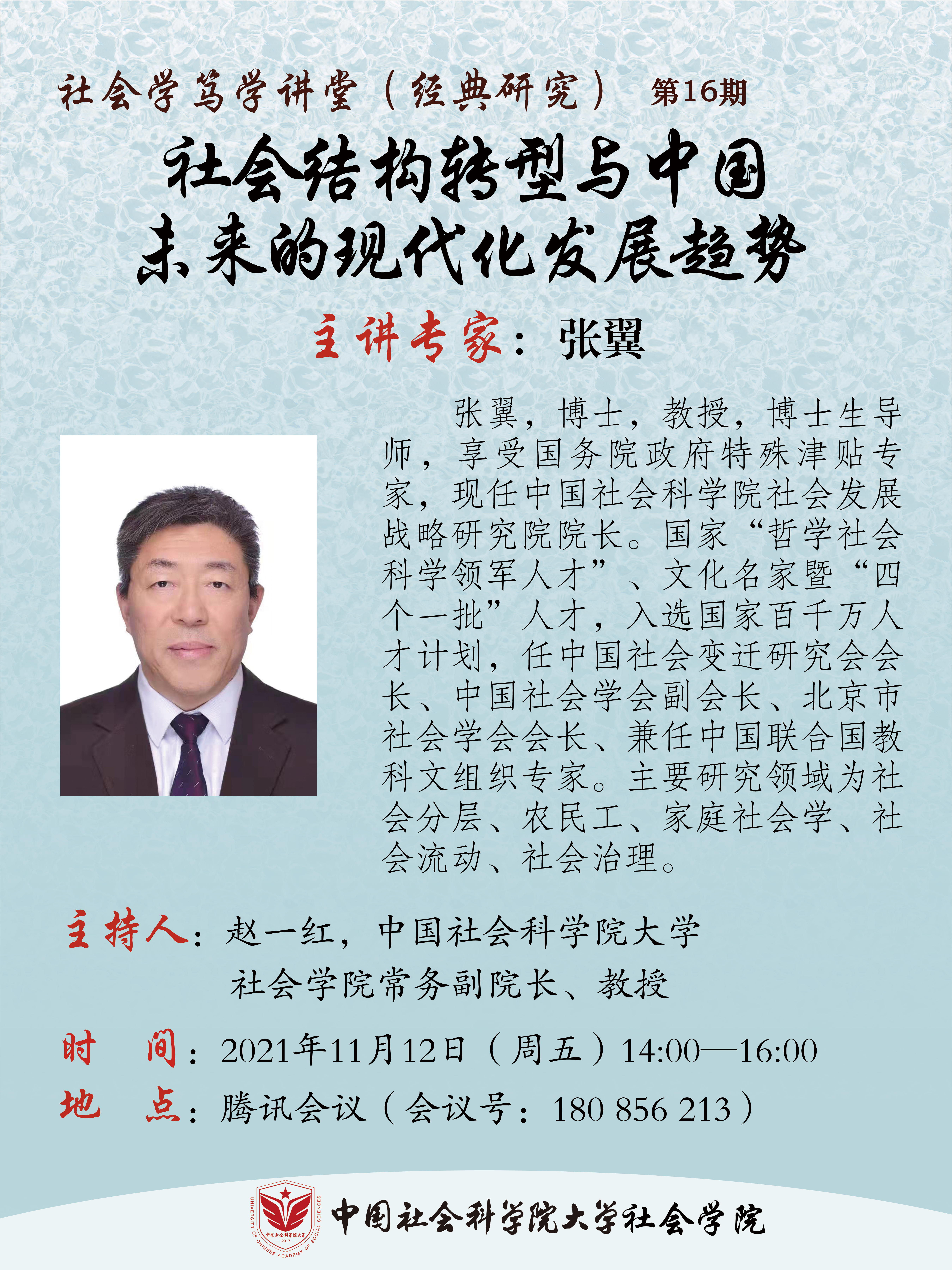 社会学笃学讲堂(经典研究)第16期—张翼:社会结构转型与中国未来的现代化发展趋势