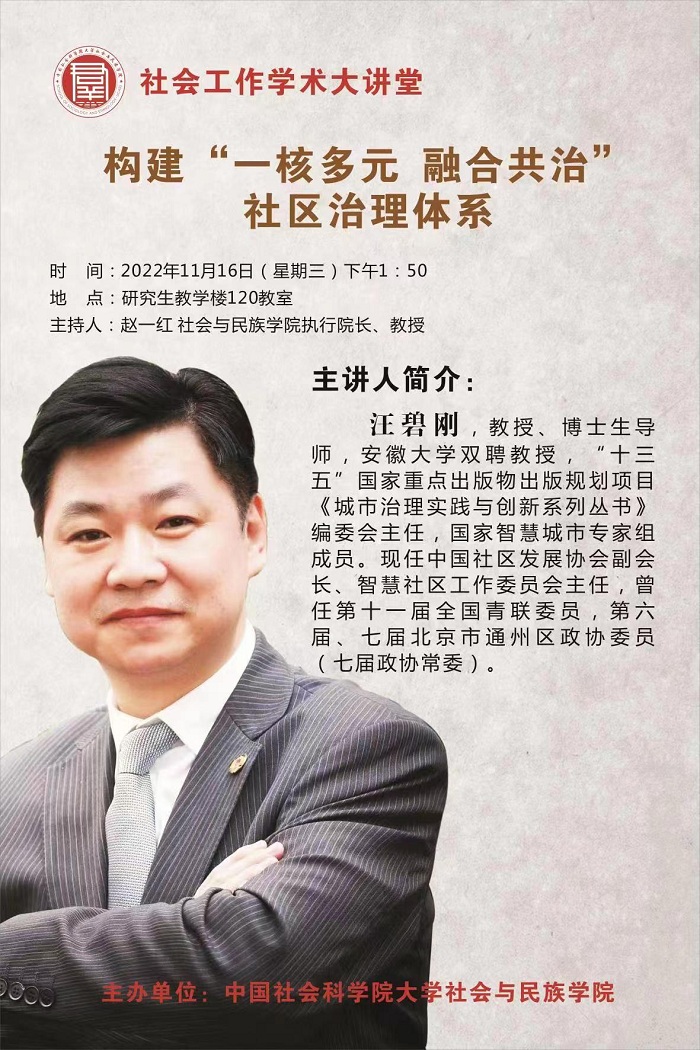 社会工作学术大讲堂—汪碧刚:构建“一核多元 融合共治”社区治理体系