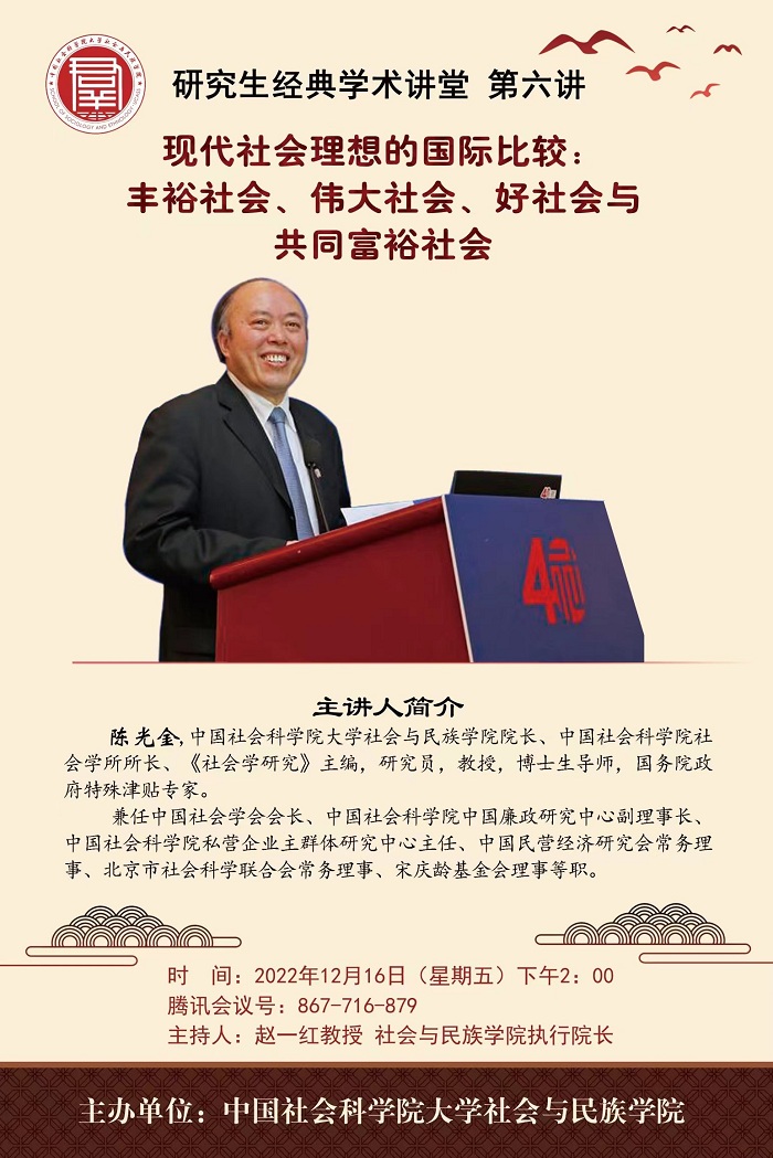 研究生经典学术讲堂 第六讲—陈光金:现代社会理想的国际比较:丰裕社会、伟大社会、好社会与共同富裕社会