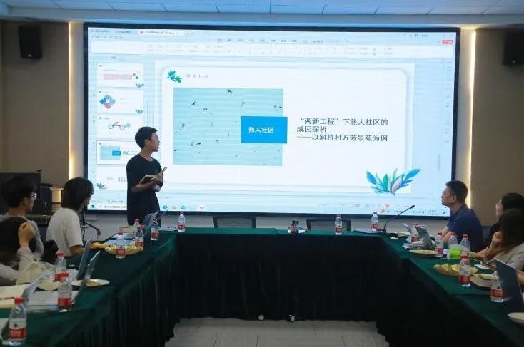 上午的学生汇报环节从9:00到12:00进行,分为三个部分。首先是杨渡村的研究,蒋经纬同学介绍了许村镇养老体系的现状、困境与发展,庞怡勤同学探讨了“厂二代”接班后经营模式的改变,唐菲玥同学分析了影响“两头婚”婚姻选择的因素。接着是李家村的研究,阚天颜同学讲述了志愿服务融入基层治理的情况,贺新月同学研究了村庄交通安全治理。最后是斜桥村的研究,毕林丰和郭骁鋆两位同学探讨了农村老年人退休再就业的类型差异与影响机制,王丝和宋训安同学介绍了“两新工程”背景下的搭户建房行为与熟人社区的兴起,沈艾琪同学分析了村企合作助推共同富裕的连接机制,潘晶鑫同学研究了多重身份基层工作者的资源整合实践。